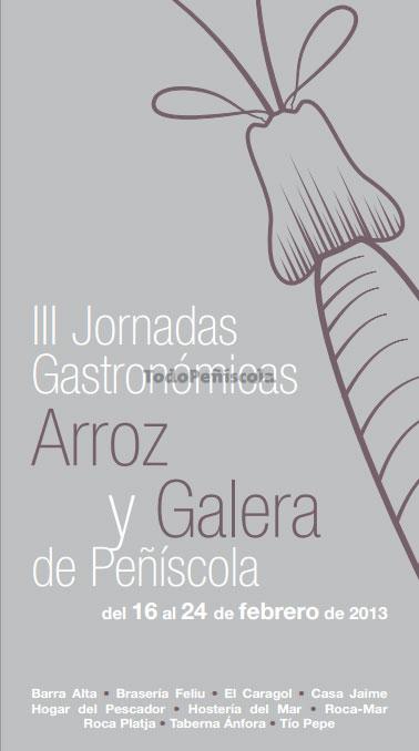 Del 16 al 24 de febrero se celebran en Peñíscola las III Jornadas del Arroz y la Galera en las que participan en esta edición diez restaurantes de la Ciudad (Barra Alta, El Caragol, Casa Jaime, Feliu, Hogar del Pescador, Hostería del Mar, Roca-Mar, Roca-Platja, Taberna Ánfora, Tío Pepe).